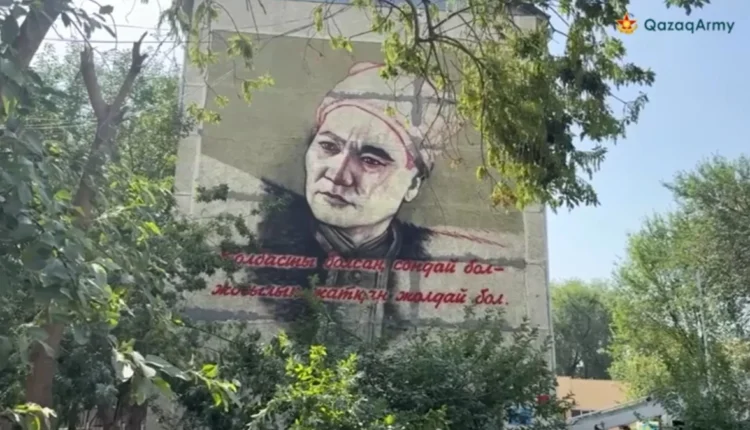 Портрет Бауыржана Момышулы изобразили на мурале в Таразе