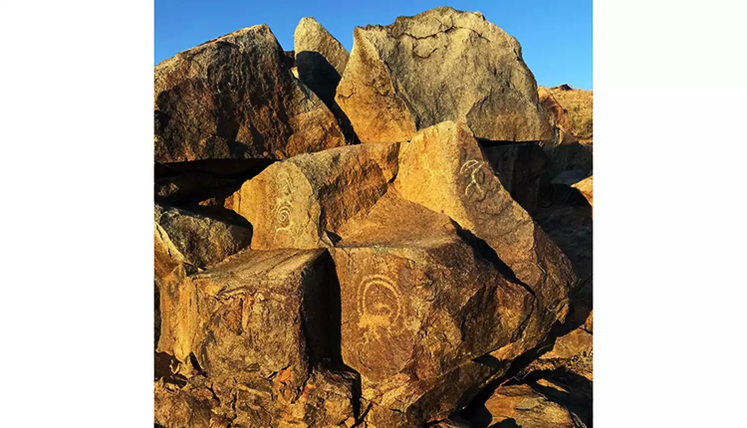 На камнях — изображения людей и животных. Вместе с директором районного музея Абаем Кенжебаевым находку осмотрели специалисты, передав информацию в Жамбылский областной историко-краеведческий музей и акимат Кордайского сельского округа. Объект расположен в урочище Чумыш неподалеку от ипподрома имени Ногайбай би.